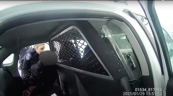 In the body cam footage, released on Sunday, you at first hear a cop yelling at a little girl walking down the street to come back, yelling that he's cold and does not want walk all the way down the street for her. From the beginning they treat her like a criminal and not like a child in crisis. He asks her why she's so upset and she says, of her mom, "she stabbed my dad." The girl and her mother, who has since shown up, have an argument about whatever happened with her father, and the girl gets increasingly upset. The cam then goes dark for about two minutes and we just hear the girl screaming that she wants her father. When the visual comes back, there are six cop cars on the street, the girl has had her arms twisted behind her and been handcuffed, and she's being pushed into the back of the police car, while the main officer says, "I wanna take mom to jail too."