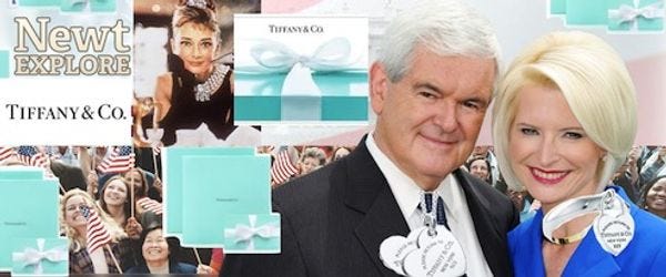 Newt went on to say that he, unlike Mitt Romney (with his nasty healthcare for everybody and other Franch schemes), stands for the common working man, the common working man just like himself. Whore diamonds. [ RealClearPolitics ]