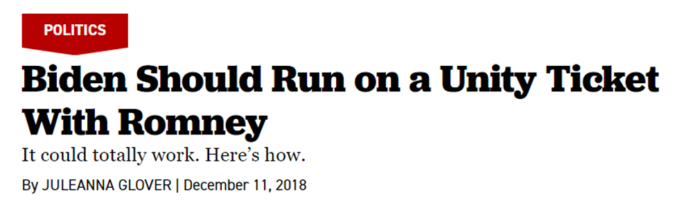 The article has more paragraphs it it but we don't fucking care anymore. Instead let's mock it by making up some really mean alternate "unity tickets" that will also win one million electoral votes in 2020: