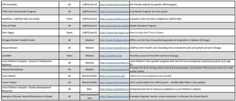 None of that stuff is in the slideshow, mind you, but the list of "resources" is there, so Lurie Children's Hospital may as well be selling sex toys for kids in its lobby. Even if the kids have to be over 18.