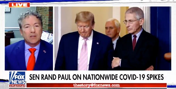 Paul claimed that he thinks Dr. Fauci is “well-intentioned" but believes in "government solutions" like some common hippie. Dr. Fauci actually believes that Americans might care enough about each other to temporarily sacrifice certain freedoms to save lives. That does seem naive when you say it out loud, but Dr. Fauci has consistently stated that he's not an elected official. He's a scientist who offers medical advice regarding the best methods of suppressing the virus.