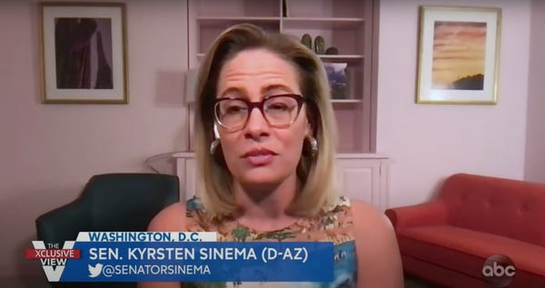 Sinema and Joe Manchin, of West Virginia, aren't necessarily aligned on which Democratic priorities they can tolerate. Is increased spending on childcare, health care, education, and the environment really worth raising taxes slightly on corporations and the wealthy? Sinema will just have to refer to her spreadsheets for the answer.