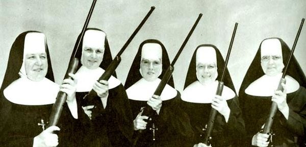 [contextly_sidebar id="9iWXHnK8OrkBelhZJCmCQBjrkVi0vY1G"]Seems like maybe the Diocese of El Paso might have the right idea; after receiving numerous calls from concerned parishioners, Chancellor Patricia Fierro announced that the Diocese would soon post signs stating that firearms are not permitted on church grounds. We hope she's ready for the inevitable flood of phone calls and emails from loonies insisting that Jesus loves the shooty shooty, that the diocese has declared itself a vulnerable target for deranged people with guns, like the ones who show up in theaters and churches and don't know the first thing about handling their firearms safely. Oh, yes, and of course the murderers, who are everywhere.