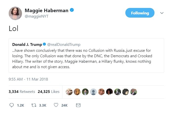 We give Maggie Haberman shit occasionally and only when she deserves it (most days), but we're gonna have to side with her on this one, because for all her journalistic faults, one thing she does have in the Trump White House is access. She's kinda bad about copying things Trump and his inner circle of dipshits say and reporting them as unvarnished truth, but she's definitely in the room, and by "room" we mean "Oval Office."