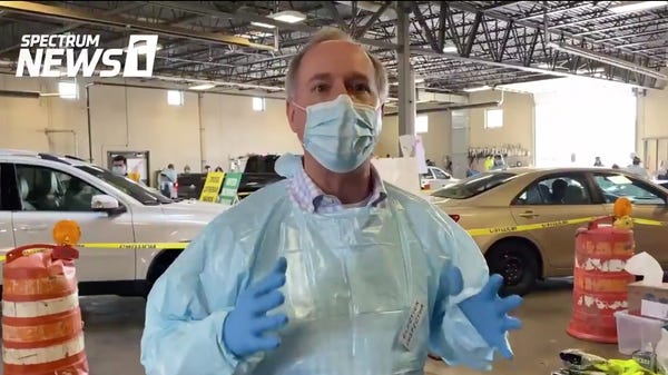"You are incredibly safe to go out" Republican @SpeakerVos tells his constituents, in full gown, gloves and mask. https: //t.co/c3wNVhWxew