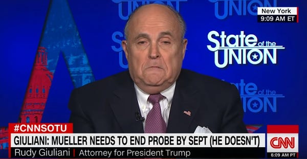 But there's not going to be a party, and now Rudy Giuliani is pretending like he didn't know there was going to be a party, WHO SAID PARTY, I'M ALWAYS UP FOR A PARTY!
