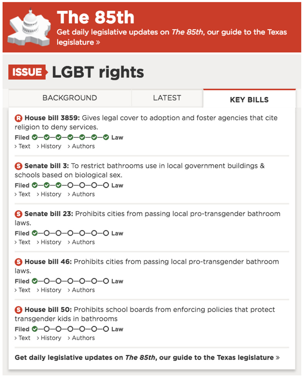 And as strange as it feels to be typing this, Big Business rode in to the rescue! After 51 Fortune 500 companies, 20 of which are headquartered in Texas, came out against the bill, it died in the Texas House. Per Dallas Morning News ,
