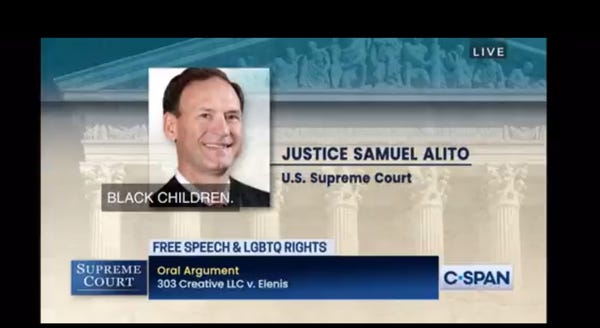 “Alito asks a hypothetical about a Black Santa at the mall who doesn't want to have his picture taken with a child dressed up in a KKK outfit. It culminates with Alito quipping: "You do see a lot of Black children in Ku Klux Klan outfits, right? All the time."”