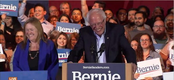 Am I excited about this? HELL YES I AM. Sure, I pulled for Warren for most of this primary but I am also super jazzed about Sanders. I love Medicare for All. I love that he has a plan to house the homeless (this is an extremely important thing to me). I love that he wants to give amnesty to all undocumented immigrants, that he wants to raise the minimum wage to $15, that he wants to implement the Green New Deal, that he wants to eliminate all student debt and subsidize public colleges, that he wants to institute a national rent control standard, and frankly, I just genuinely like him as a person.