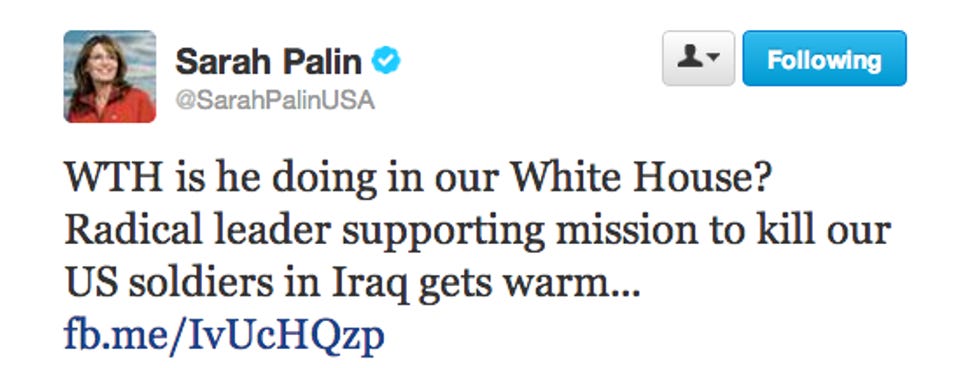 While some conservatives are threatening to do amendments to the Constitution and suddenly caring about the abuse of power by unelected judges who TOTALLY did not abuse their power in the Bush v. Gore decision, which is a different thing and also a long time ago, so shut up and let us never speak of that again, the Quitta from Wasilla is just going to keep on keeping on with her war on Obama we mean terror. Because a thing on Fox "News" says that a "Muslim scholar" had a meeting with "Obama administration officials." And, as everyone knows, "Muslim scholar" is just fancy talk for "terrorist." And not the kind of newfangled "ladies what don't want Texas Republicans all up in their vaginas" terroristswe learned about last night from Texas state Rep. Bill Zedler. Oh no. Palin is fightin' to preserve the sanctity of traditional muslin terrorism. Plus, it is so much easier to talk aboutthatthan to, like, admit defeat on that whole sanctity of marriage thing, which is a SUPER important issue in the Palin family, as Bristol once explained to the president , because she is SO an expert on that stuff.