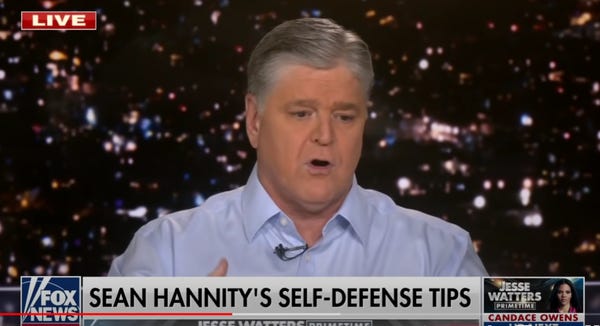 “Hannity can't stop, won't stop pretending he's an MMA fighter: "This is what I know from my martial arts training. If I put you in what’s called a rear-naked choke...you are going to drop to your knees in 15 seconds."”