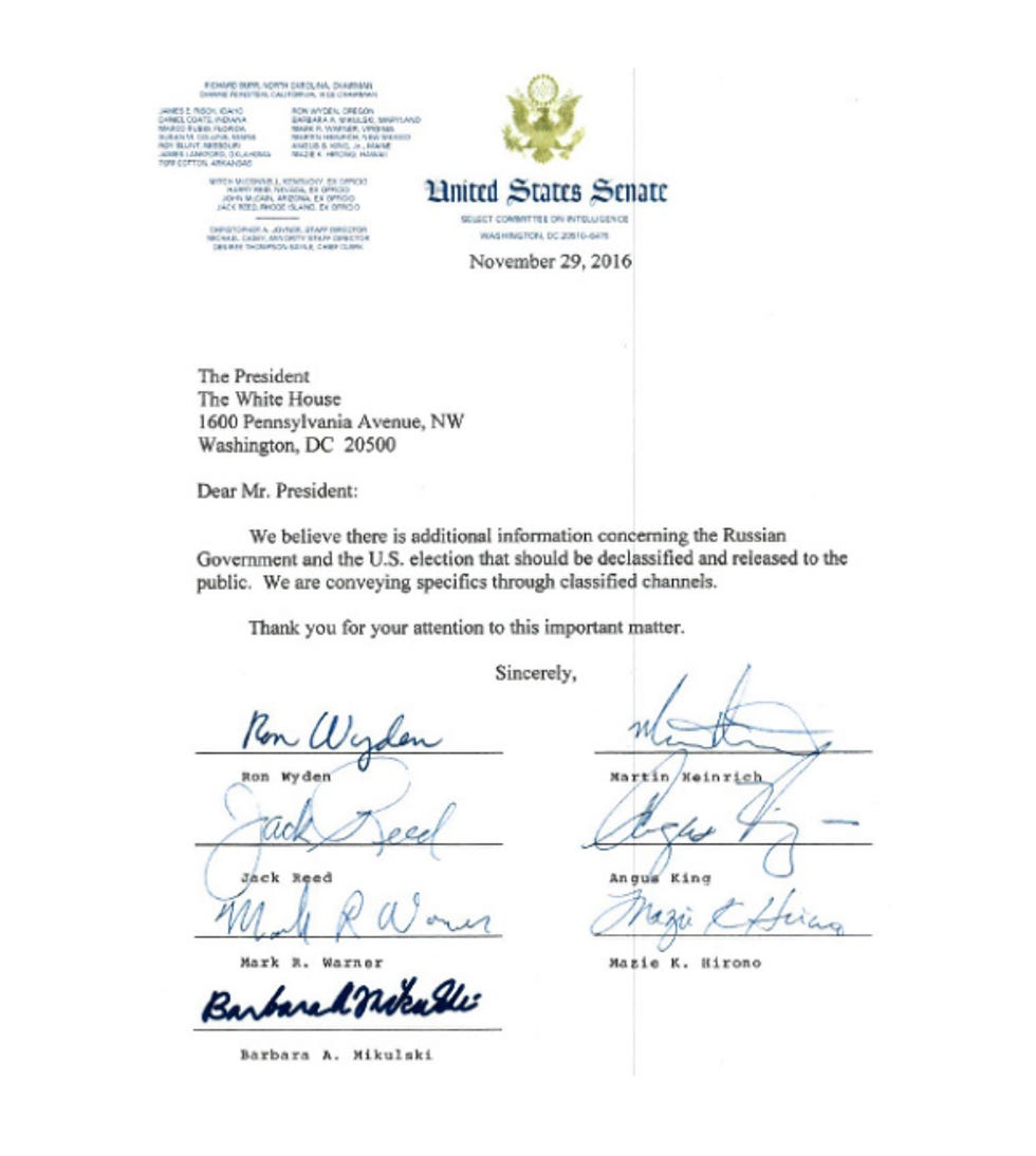If you cannot embiggen, that letter is from Senators Ron Wyden, Jack Reed, Mark Warner, Barbara Mikulski, Martin Heinrich, Angus King and Mazie Hirono. Here's what it says: