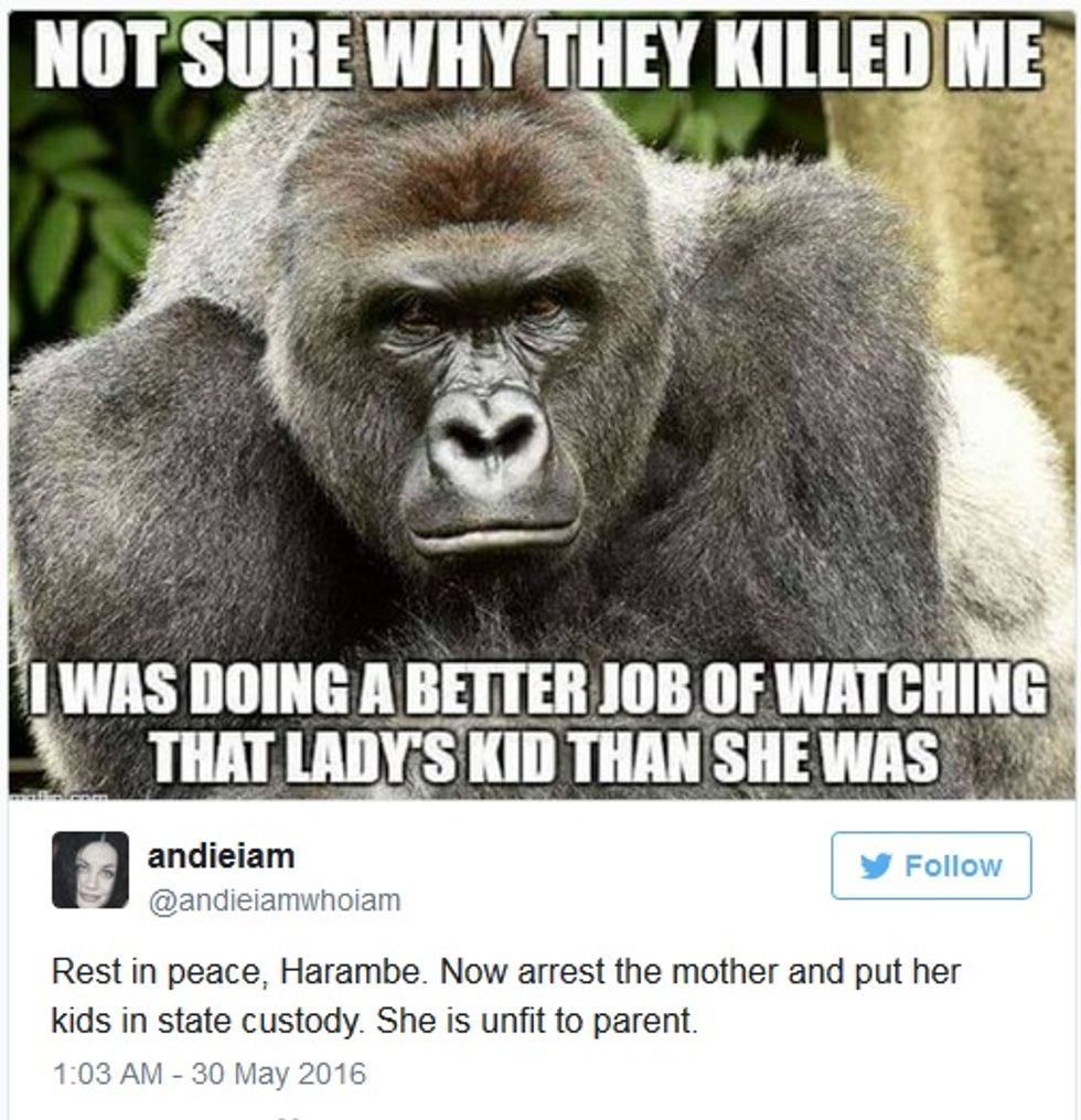 The Washington Post declined to identify the woman, saying only that internet vigilantes flooded a Facebook post by a woman who posted a message thanking God her child had survived; she later shut down her Facebook account, as did a preschool where she may have worked, after it too became the target of angry messages. People were especially angry that the woman's Facebook message was focused on the safety of her child, without sufficient remorse over the death of Harambe.