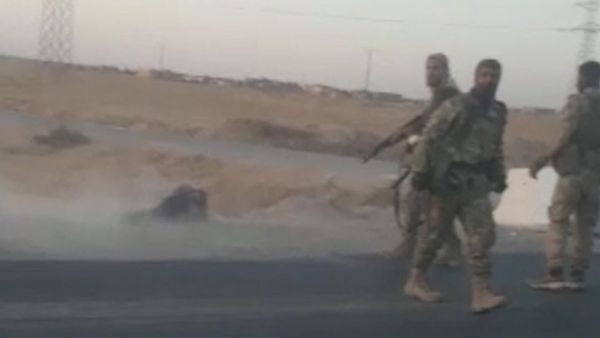 The Post and other sources report on a separate incident Saturday, in which Syrian fighters appear to execute Kurdish prisoners, which is a war crime: