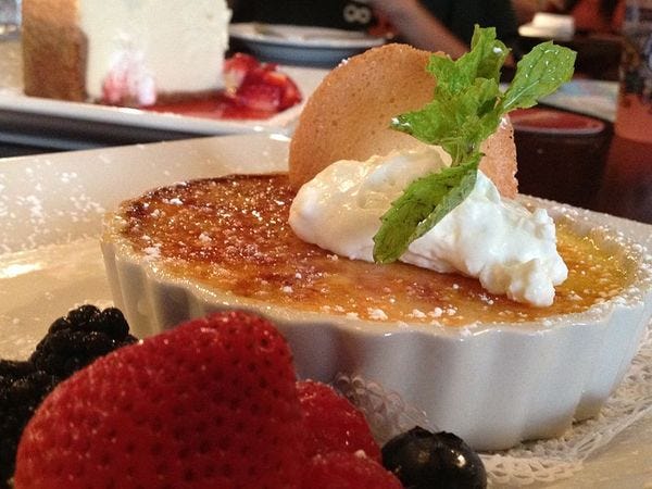 Years ago I worked at a rather high-end tea room/lunch spot. The food was simple, yet impeccable, and the desserts were insanely amazing. People would come in get a cup of soup and two desserts -- that kind of amazing.