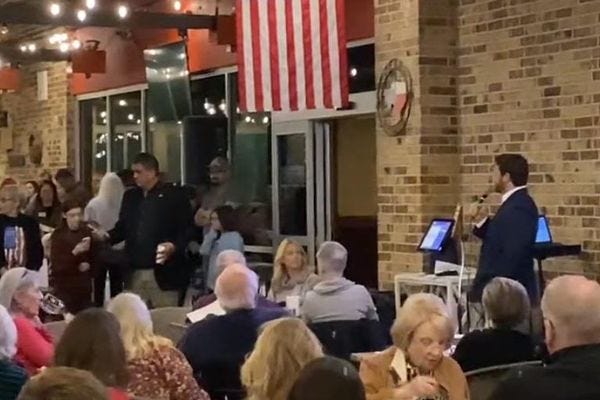 That was followed, logically enough, by a couple of chants of the traditional expression of Christian faith, "Let's go, Brandon! Let's go, Brandon!" because it's Texas and they're tea partiers and Jesus wants you to say "Fuck you, Biden" whenever you can, as long as you're polite about it.