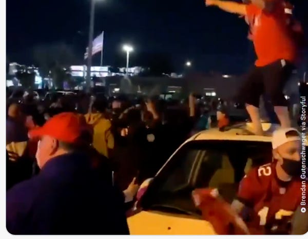 These assholes acted like they got a Super Bowl ring and some Tom Brady money. I was pleased when Hamilton won all the Tonys, but I didn't feel the urge to dance on top of cars (mostly because I would've been shot). That was back in pre-pandemic days when gathering in large crowds was only annoying, not potentially lethal.