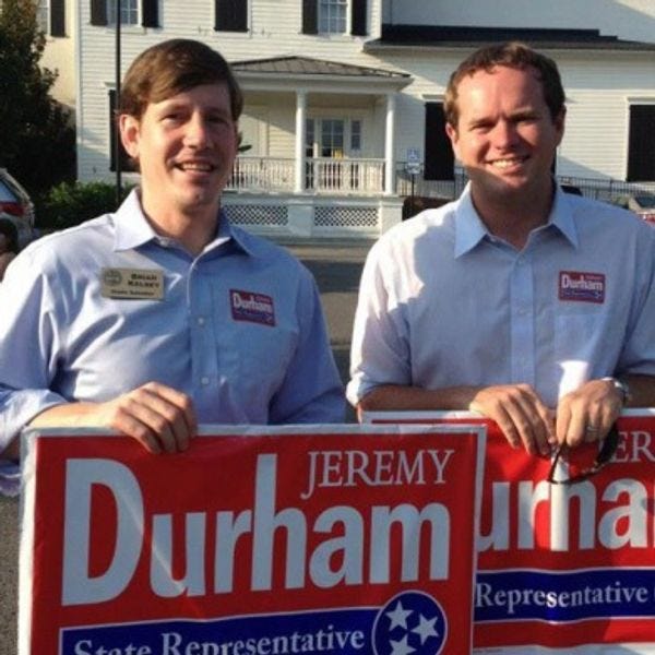 On the right, the sexter Rep. Jeremy Durham. He probably has a boner right now. On the left, TN State Sen. Brian Kelsey. We don't know anything about him. (OR DO WE?)