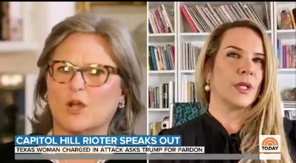 Life-coach-slash-real-estate-agent-turned-insurrectionist Jenna Ryan was the subject of what NBC News described as a “freewheeling and at times combative" interview Monday on the "Today" show. Ryan flew on a private jet to the January 6 Trump-inspired siege on the Capitol. She's very white, like America's Test Kitchen's recipe for gumbo, so she doesn't comprehend that she broke a few laws when she breached the Capitol with a MAGA mob that shouted, “Hang Mike Pence!"