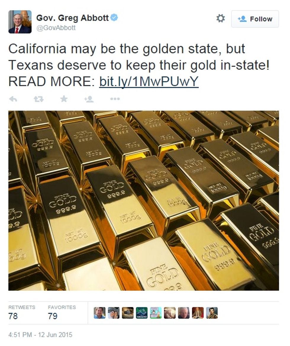 [Capriglione] told the Star-Telegram that when he first announced his interest in establishing a depository in Texas in 2013, he “got so many emails and phone calls from people literally all over the world who said they want to store their gold … in a Texas depository. People have this image of Texas as big and powerful … so for a lot of people, this is exactly where they would want to go with their gold.”