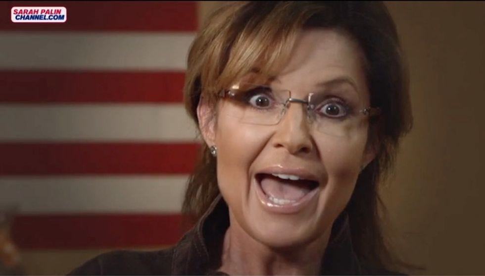 What? No? And also, what? Usually, Yr Wonket is able to trace Palin's talking points back to some neckbearded corner of the Internet, but we are at a loss here—we do not know what this sentence means, and we also do not know what this sentence is even trying to mean. We submit it as further evidence that the Sarah Palin Channel operates on a strict one-take-only policy.