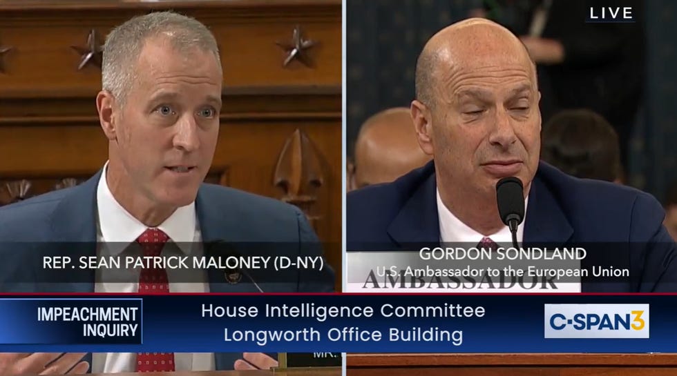 And now it's time for Sean Patrick Maloney to be "HELLO NURSE!" sexxxxy we mean highly prepared for his questioning with good questions written for Gordon Sondland.