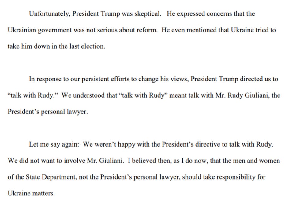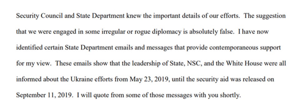 12: 01: Sondland all "pretty sure my channel was the REGULAR one when the Secretary of State and the Secretary of Energy and the fuckin' president is giving the orders."