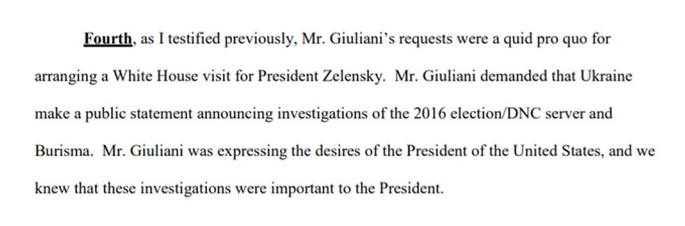 9: 42:Yes, it was a quid pro quo, and yes, Trump ordered it.