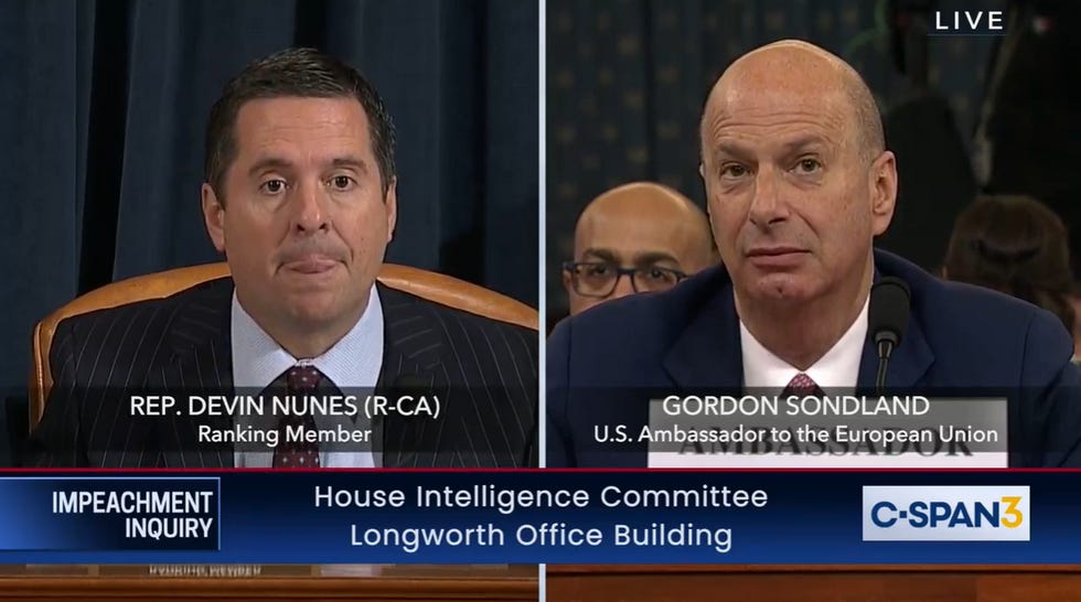 NUNES: Gordon Sondland, I AM NOT GLAD YOU ARE HERE.