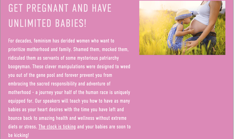 The conference plans to teach women all kinds of important things. For instance, did you know that instead of having careers and lives, we could just be baby factories?
