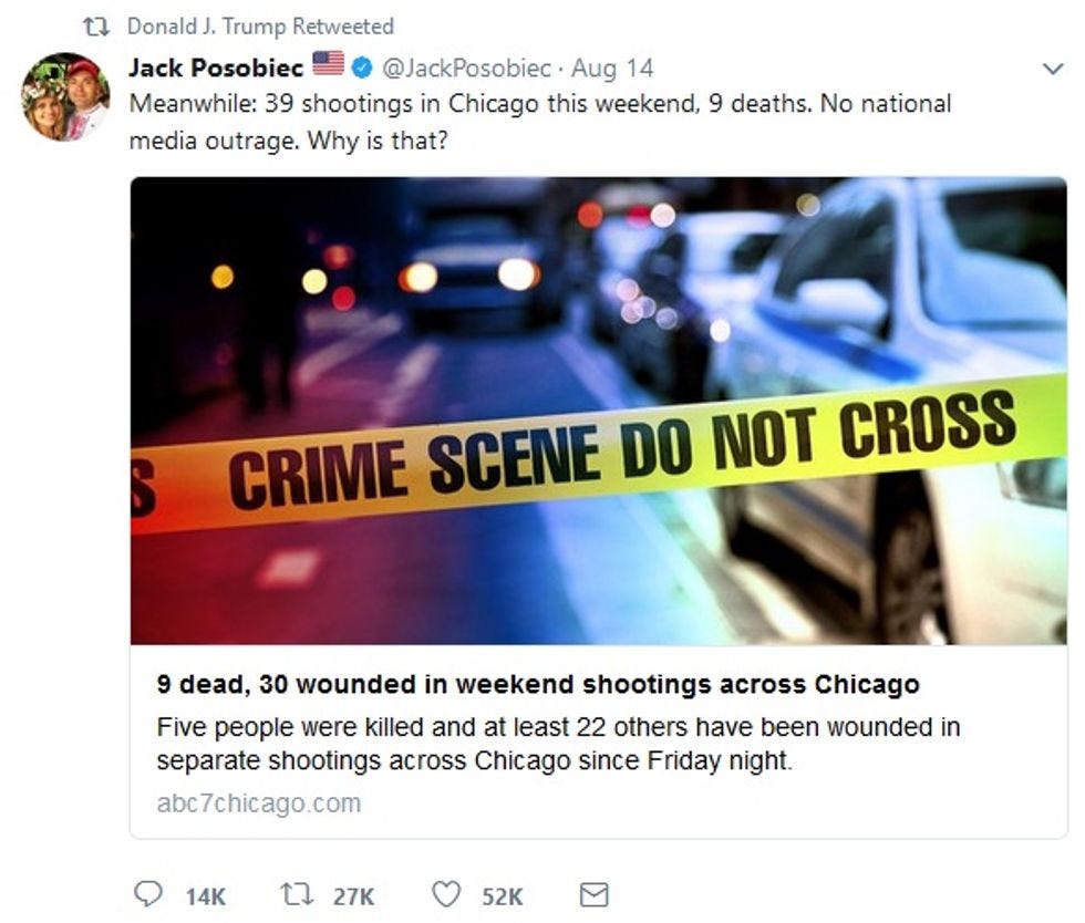 Posobiec finally came to national attention when Donald Trump, in a run-up to Tuesday's bonkers press conference, retweeted a "what about the blacks?" tweet by Posobiec late on Monday: