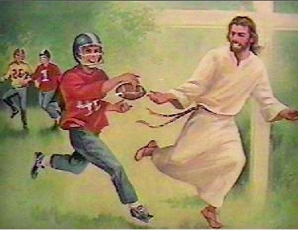 Now that we look at it on the YouTubes, we see this went up in January 2011, so maybe it was a timely Super Bowl sermon then. But it's just as appropriate for Election Day, because just as Jesus was always going on about fair electoral practices and proportional representation, the Constitution of the United States is all about Jesus: