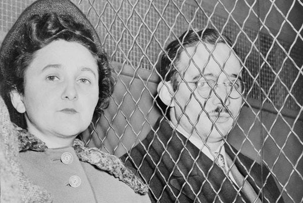 Both Julius and Ethel Rosenberg came out of the leftist Jewish tradition extending back into the late 19th century. He was born in New York in 1918, she also in New York in 1915. They both became members of the Young Communist League in the mid-1930s, as was far from uncommon in those days where democracy seemed to be dying and communism looked like the only hope for the left. They married in 1939.