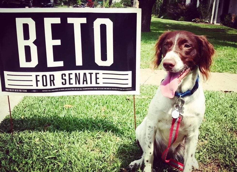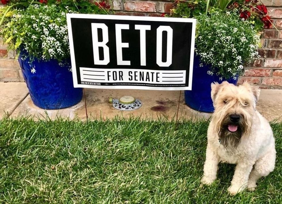 Then there are all the photos of doggies with Beto campaign signs, which may stray from the theme a bit, but CUTE DOGGIES: