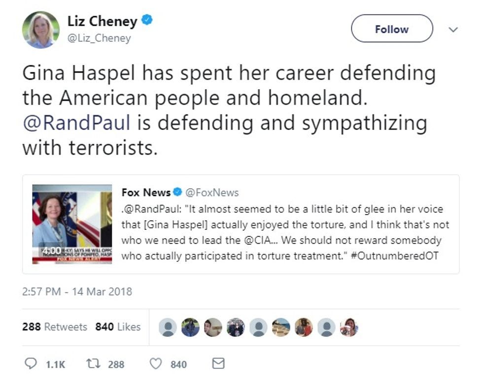 Torture's Back, So Liz Cheney Called Rand Paul A Terrorist Symp (UPDATED)