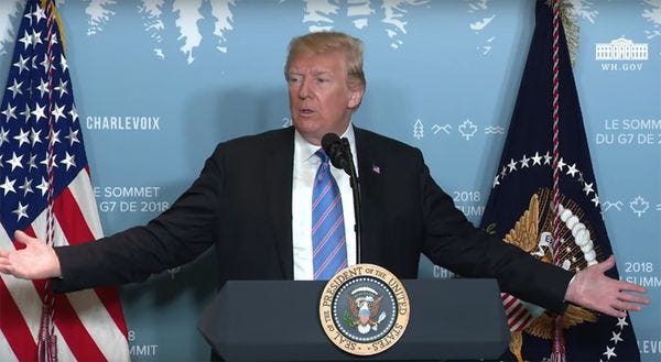 And we were off to the races! And what had Mean Justin done? Oh, he just gave a presser after Trump was wheels up saying Canada would probably have to retaliate against the stupid and unnecessary tariffs Trump is putting on Canadian aluminum and steel. Mean Justin had said such things before, but THIS TIME WAS DIFFERENT.