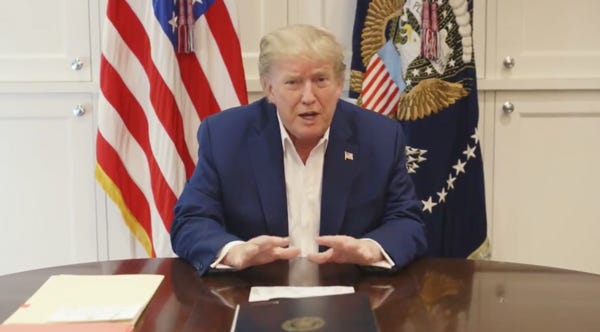 Trump's a real workaholic. Even though on an average weekend when he's not hospitalized, he's playing golf. If he was swinging a nine iron in his swank hospital digs, we'd know he was fully recovered. Now I just think he's delirious, probably hallucinating a full rally crowd in the room with him as he sings “I'm Going Home."