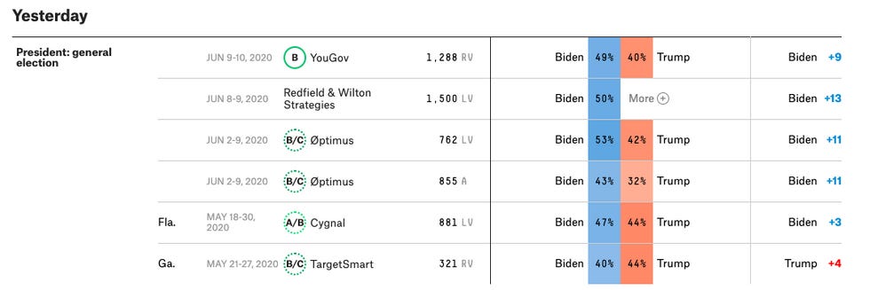 But you don't see a lot of 50-50 polls, right? Because most surveys allow for the fact that some portion of voters haven't made up their minds yet. Like so ...