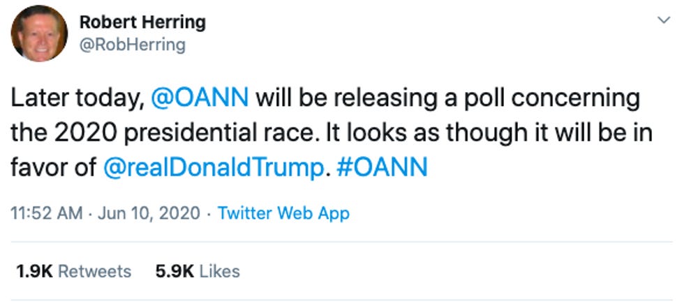 While most of OANN's spilled seed lands in the fertile soil of the wingnutosphere, this broadcast was bound to attract widespread attention after the network's chief executive Robert Herring flogged the report as an antidote to the CNN poll that caused Trump to lose his shit on Monday. Everyone in DC was waiting for this thing to drop, and when it landed like a Russian-inflected turd in the punch bowl, the geniuses at OANN raced to fish it out and flush it away before anyone noticed. But the internet never forgets! So those OANN wankers got shit all over themselves, as usual, and once again the president took a one day story, the CNN outlier poll showing Biden 14 points ahead, and dragged it out over five stupid days.