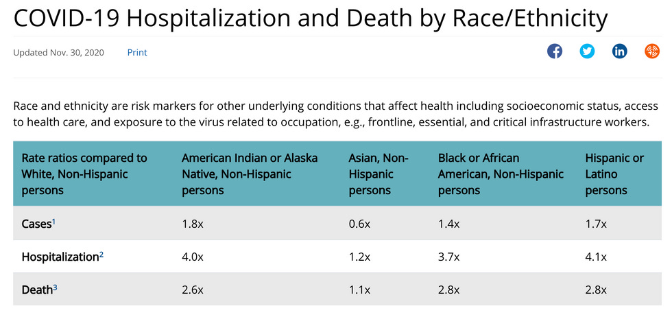Tucker is also mad because some people also pointed out that these essential workers are predominantly people of color and seniors are predominantly white. This is, in part, a necessary thing to point out because there are tons of studies showing that ethnic minorities are more at risk of being hospitalized for or dying of COVID than are whites, including the CDCs own data .