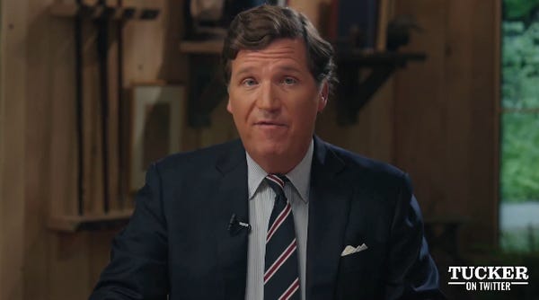 Oh so now he's just on social media saying his thoughts. We thought this was some kind of new Twitter show that was going to revolutionize right-wing media. ("Would be great to have shows from all parts of the political spectrum on this platform!" tweeted Elon, retweeting Tucker's first episode.)