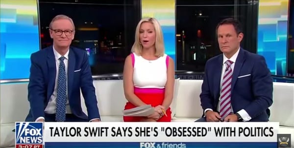 That is, until, this morning, when the gang over at Fox and Friends questioned whether or not good American citizens should continue buying Taylor Swift's albums and such, now that she has come out of the closet as someone who is not only a Democrat, but as someone who voted for Barack Obama and liked having him as a president. What? So controversial!