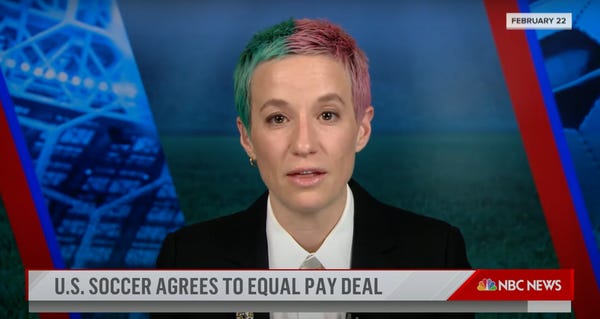 Wednesday’s announcement ends years of contentious negotiations over what should’ve been obvious. Superstars Alex Morgan and Megan Rapinoe have led this push among women players for equal pay in a field where women kick ass.