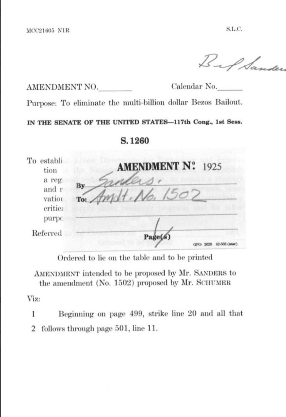 This week — and possibly even today — the Senate is set to vote on the Innovation and Competition Act (formerly known as the Endless Frontier Act), which may include an amendment to give an additional $10 billion to NASA, which is likely to go to Amazon — whose proposal to NASA just so happened to cost $10 billion.