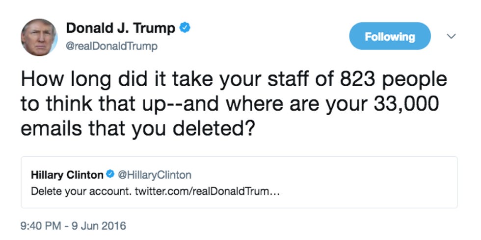 Later that night, Trump was bitching on Twitter about those 33,000 emails: