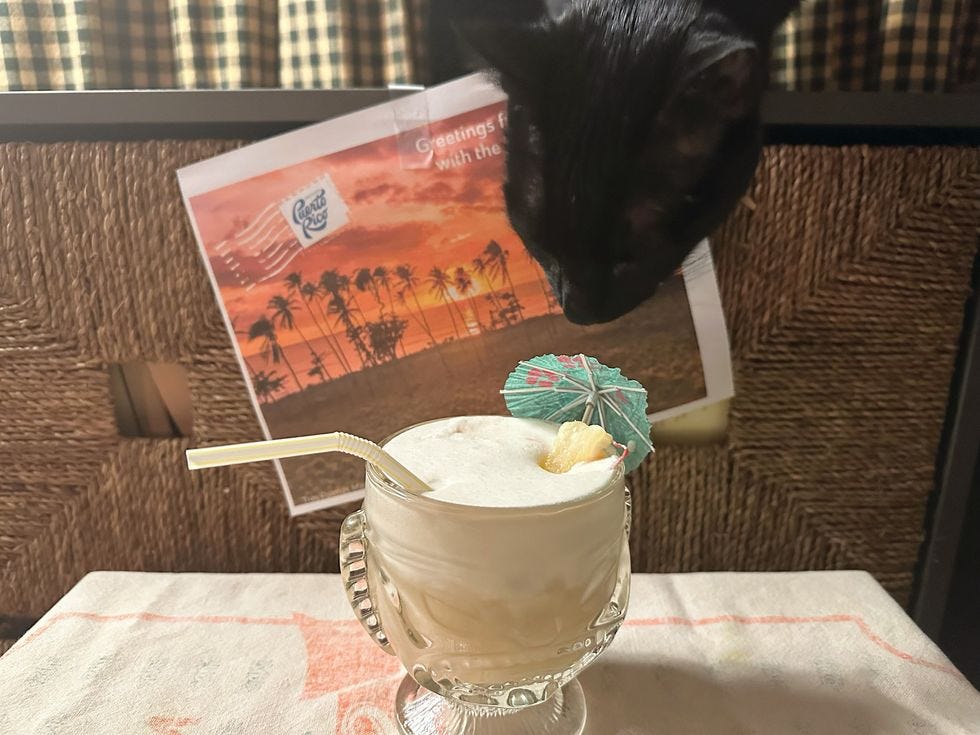 Yes, yes, I can. Because it’s my bar, and I make the rules, and sometimes you have to ignore the calendar and drink what you like. And right now, I would like a piña colada very much. Here’s the recipe.