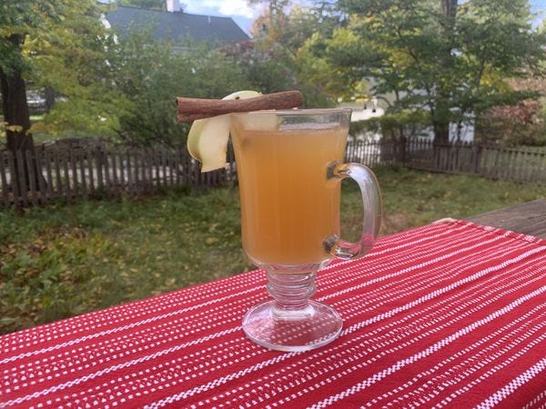 Garnishes: An apple slice and a cinnamon stick are obvious choices. A mint or rosemary sprig is also very good here, and I wouldn’t say no to a lemon twist. Toss your garnishes into the cup before drinking. The heat of the drink will make the aromatics bloom. Take a sip and fortify yourself. There’s a revolution to be had. Time for some liquid courage.