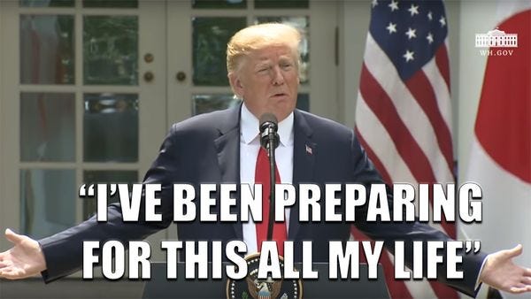 Axios has another story about how Trump spends executive time with "The Book" -- not the Bible, which he still ignores, but his briefing book. Staffers reportedly need to include lots of happy-time news stories and Fox chyrons about winning.