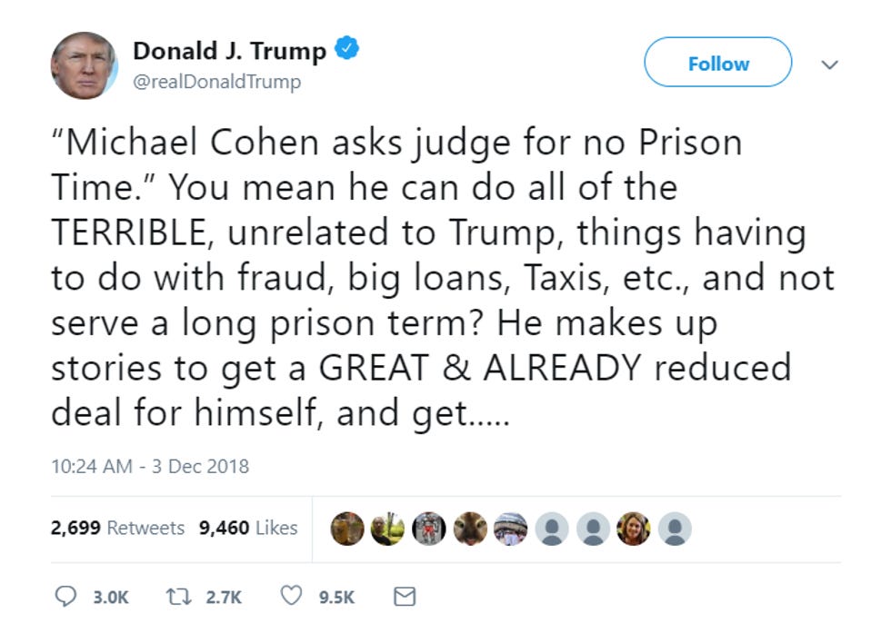— Donald J. Trump (@Donald J. Trump) 1543677718.0