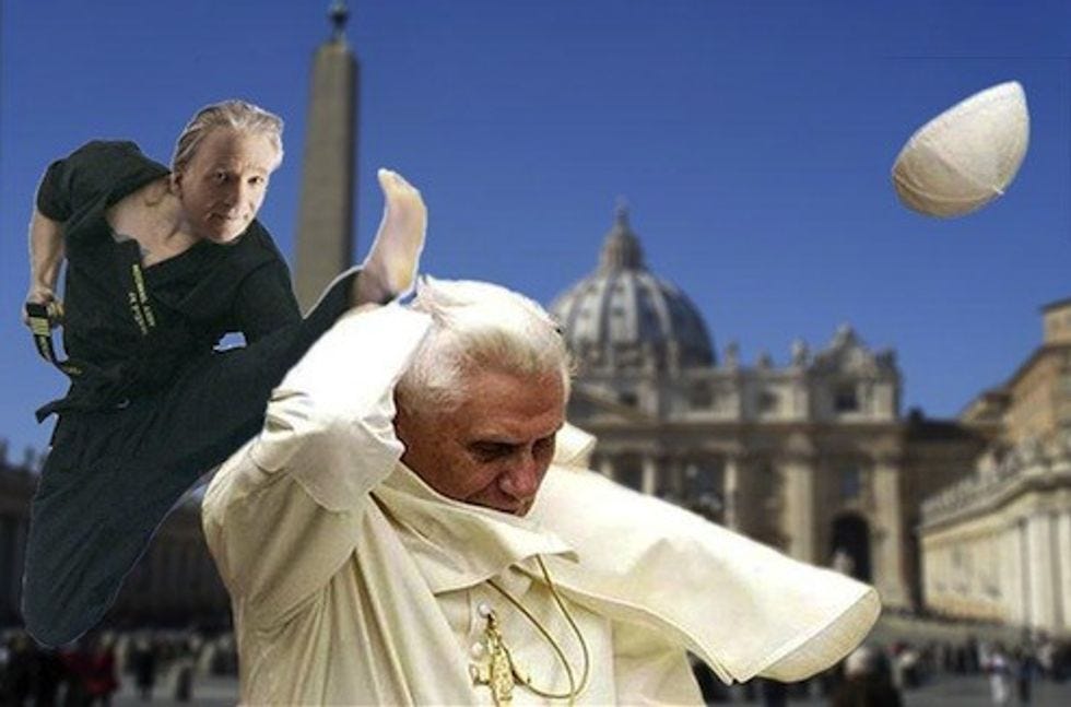 * The one with Maher kicking the pope in the head is pretty good, actually. So that's the winner!